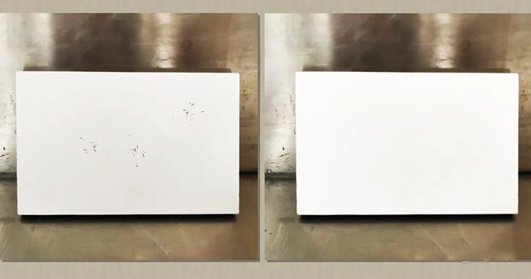 ▲在三聚氰胺板直接涂水性漆白面,經30次冷熱循環后的密著性測試
